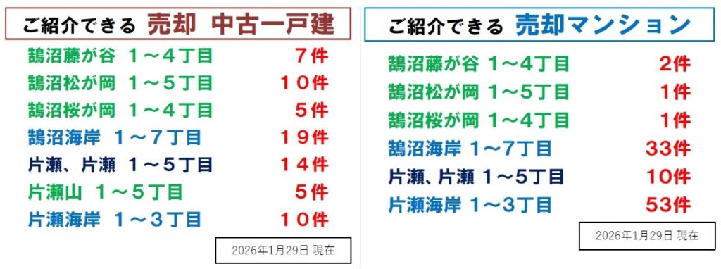 下記、ご紹介できる物件数の一例(弊社周辺)です。神奈川県内、どこでも対応致します。