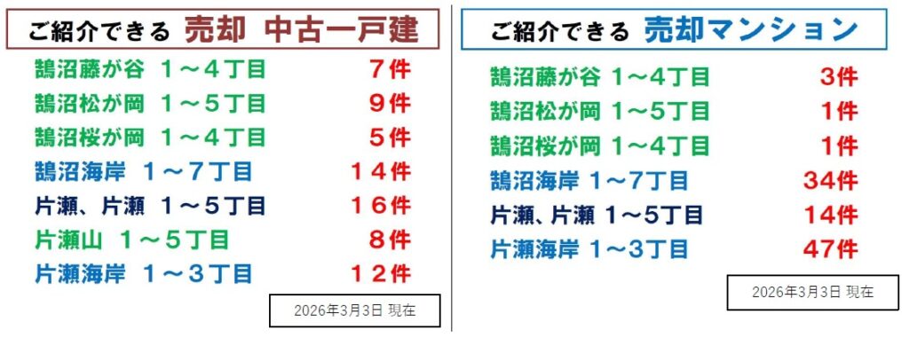 下記、ご紹介できる物件数の一例(弊社周辺)です。神奈川県内、どこでも対応いたします。