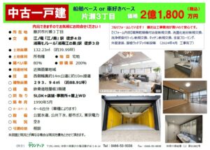 売ベース(売買) 片瀬3丁目・2憶1,800万円・船舶ベースor車ベース