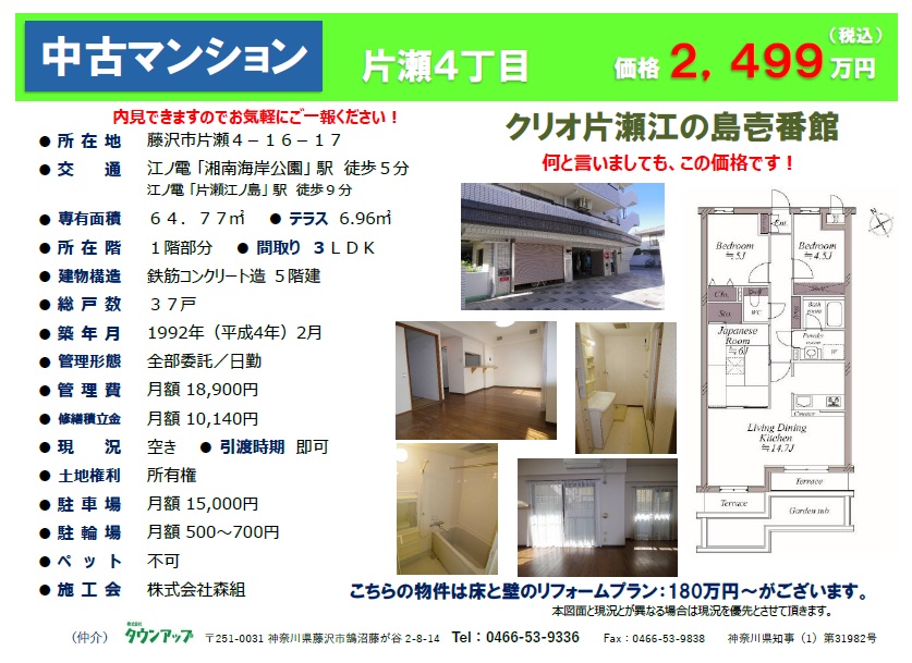 中古マンション(売買) クリオ片瀬江の島壱番館・1F・2,499万円・1992年(平成4年)2月築