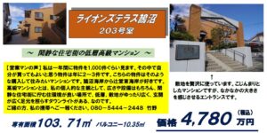 閑静な住宅街の高級低層マンション(売買)ライオンズテラス鵠沼・4,780万円