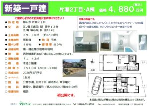 新築一戸建(売買)片瀬2丁目・A棟・4,880万円・初公開