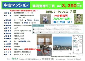 海・江の島一望マンション(売買)鵠沼パークハウス・7階・3,390万円・フルリフォーム・ペット可