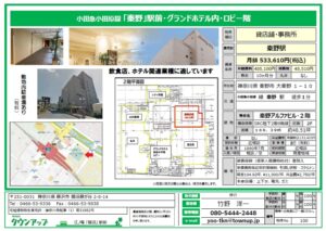 店舗(賃貸)秦野駅前・グランドホテル内・2階ロビー横・飲食店・フィットネスジム等・48坪~150坪