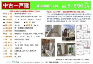 中古一戸建(売買)鵠沼海岸5丁目・5,890万円・土地115㎡・建物85㎡ 4LDK・フルリフォーム済