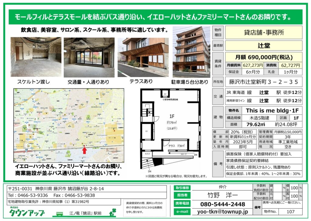 店舗(賃貸)辻堂駅徒歩12分・飲食店可・1階・24坪