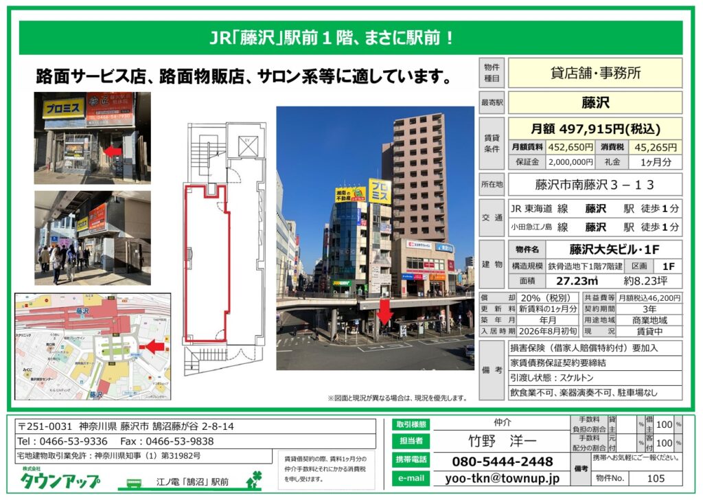 店舗(賃貸)藤沢駅南口まさに駅前・1階・8坪