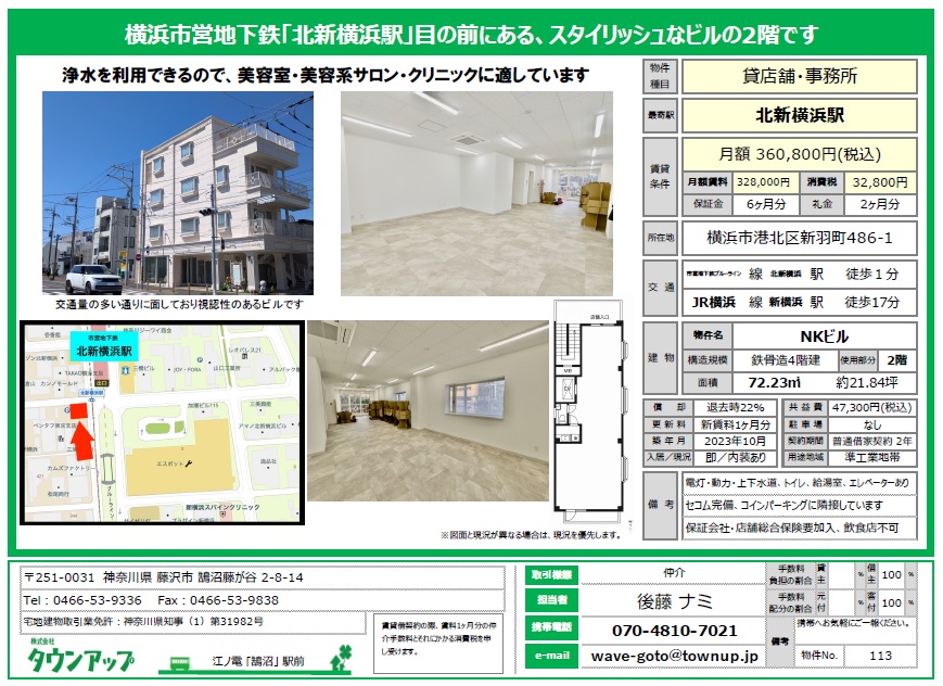 店舗(賃貸)北新横浜駅前・1分・2階・21坪・スタイリッシュなビル